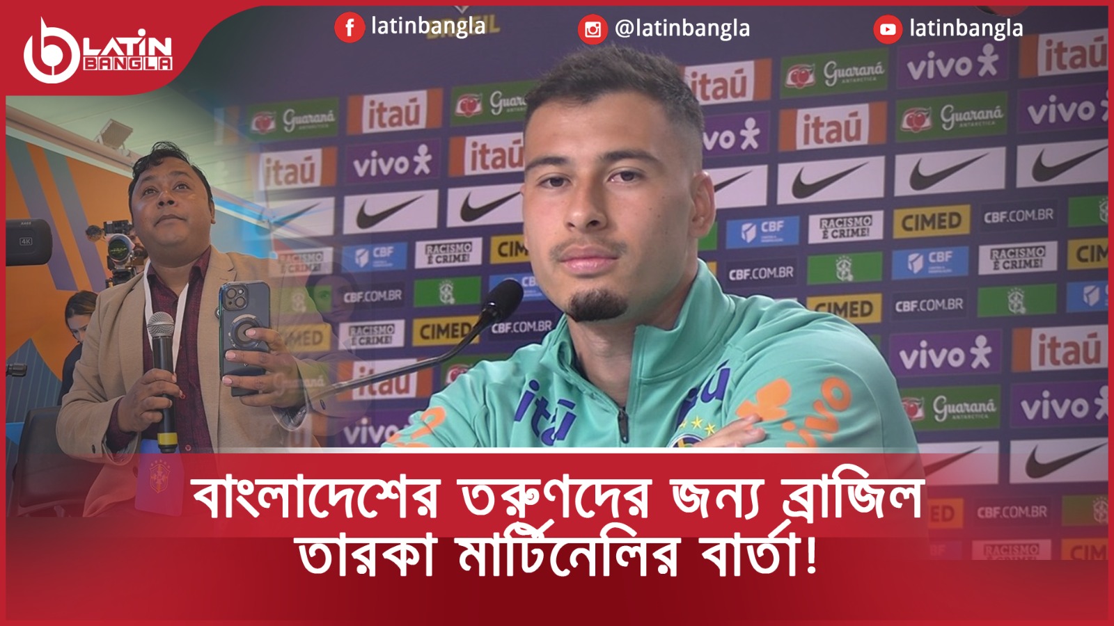 সামনে বলিভিয়ার সাথে ম্যাচ, বিশ্বকাপের প্রস্তুতিতে শাণ দিতে মরিয়া ব্রাজিল। অনুশীলন চলছে জোর কদমে। তার আগে ব্রাজিল দলের সংবাদ সম্মেলনে গ্যাব্রিয়েল মার্টিনেলিকে প্রশ্ন করা হয় বাংলাদেশে আপনার অনেক তরুণ ভক্ত আছে, যারা ফুটবলার হতে চায়। আপনি তাদের কী পরামর্শ দেবেন?